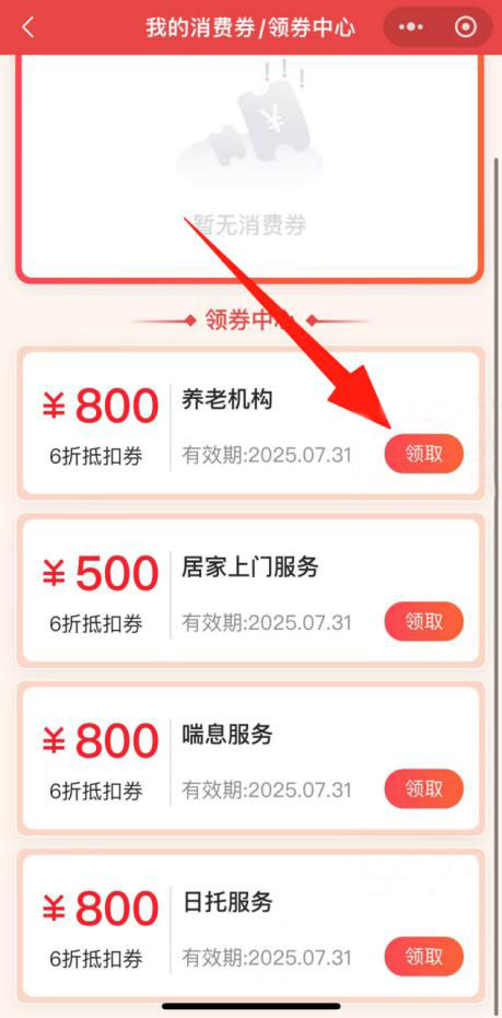 注意:每位老年人在同一月内仅可领取某一类电子消费券一张,不同类的电子消费券不能重复领取、叠加使用。