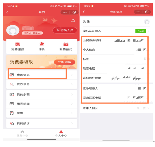 7. 登录后—首页—养老服务消费补贴项目—个人中心—我的信息—完善个人信息;